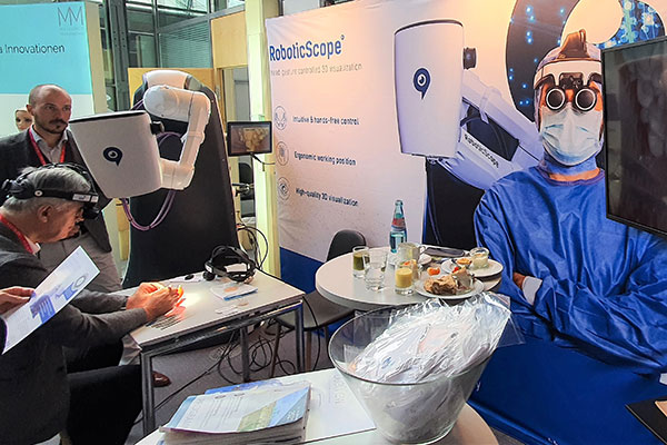 Oktober 2021: Nach fast 2-jähriger Corona-Pause findet der Jahreskongress der Deutschen Gesellschaft der Plastischen, Rekonstruktiven und Ästhetischen Chirurgen in Postdam wieder als life-Veranstaltung statt. Trotz aufwändiger Hygiene-Maßnahmen wird der Kongress sehr gut angenommen und ermöglicht endlich wieder einen regen kollegialen Erfahrungsaustausch. In der Industrieausstellung werden neue Robotic-Systeme für die plastisch-chirurgische Mikrochirurgie vorgestellt (Foto) und Dr. Eberlein sichtet wieder innovatives plastisch-chirurgisches Operationsinstrumentarium.